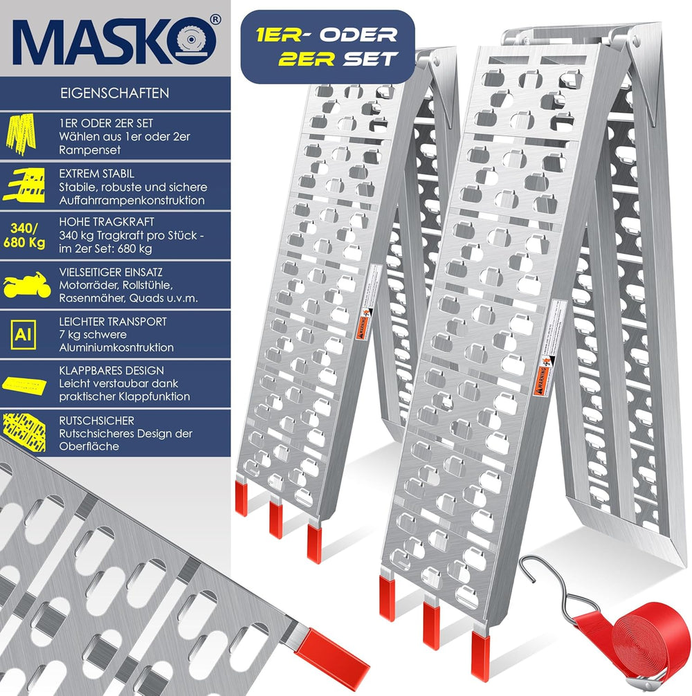 Maskoยฎ Auffahrrampe 340kg Faltbare ALU Verladerampe Max 680kg* Pro Paar Verladeschiene Antirutsch Kl