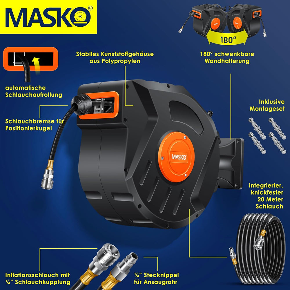 - ๐ ร๐ ๐๐๐๐ ๐๐ ๐๐๐ ๐๐๐ ร๐๐๐๐: Egal ob Profi-Werkstatt, Garage, Hobby-Keller, Landwirtschaft oder Garten - mit dem MASKO automatischen Druckluftschlauch-Aufroller gehen Arbeiten leicht von der Hand.