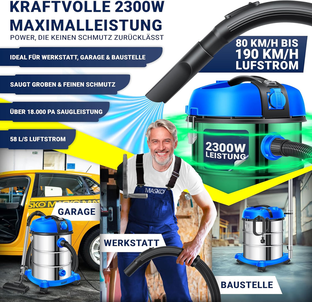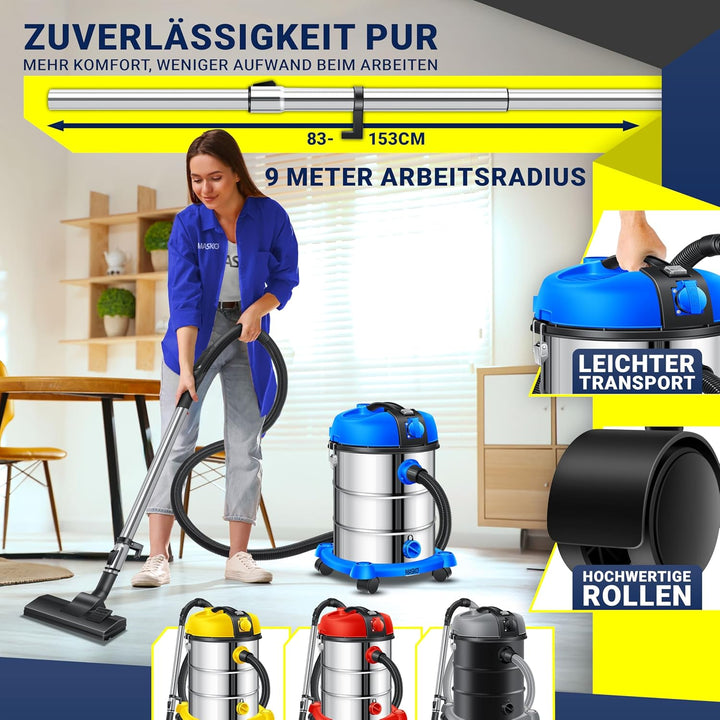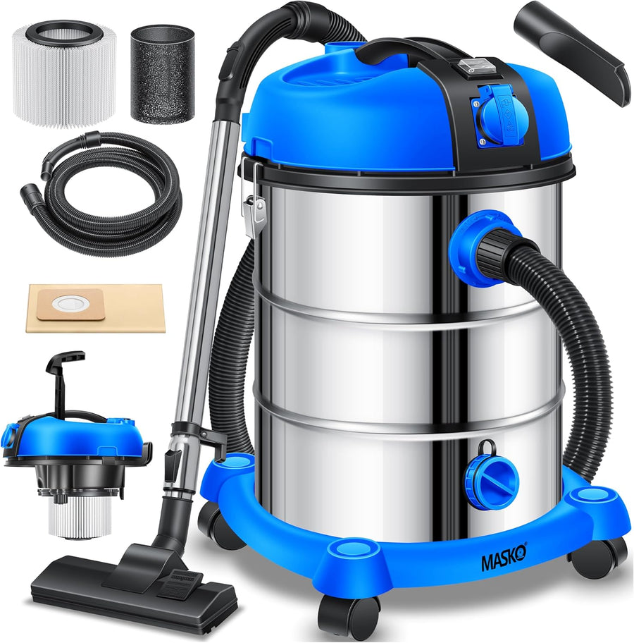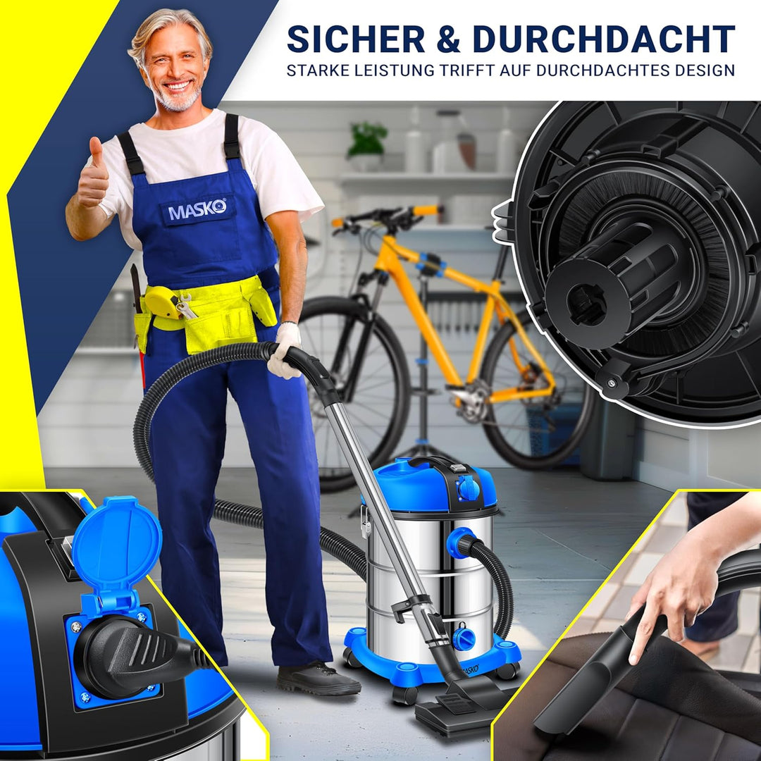- 𝐄𝐗𝐓𝐑𝐄𝐌 𝐕𝐈𝐄𝐋𝐒𝐄𝐈𝐓𝐈𝐆: Verwendbar als Trockensauger mit Beutel und Filter sowie als beutelloser Wassersauger mit praktischem Wasserablass und 30 Liter Behälter | 3 Wechselfilter = Kartuschenfilter, Feinstaubfilter, Nassfilter