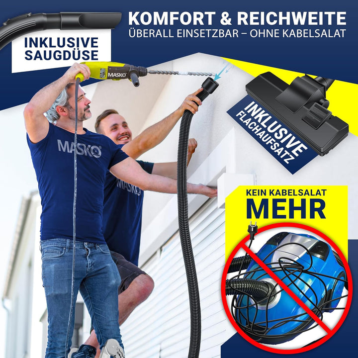 - 𝐆𝐑𝐎ss𝐄 𝐁𝐄𝐖𝐄𝐆𝐔𝐍𝐆𝐒𝐅𝐑𝐄𝐈𝐇𝐄𝐈𝐓: 8m Bewegungsradius durch 3m Schlauchlänge, 4m Kabellänge und 1m Teleskop-Saugrohrlänge | Zusätzliche Steckdose auf der Abdeckung | Bodendüse für glatte Böden - Fliesen, Holz, Beton, Teppich