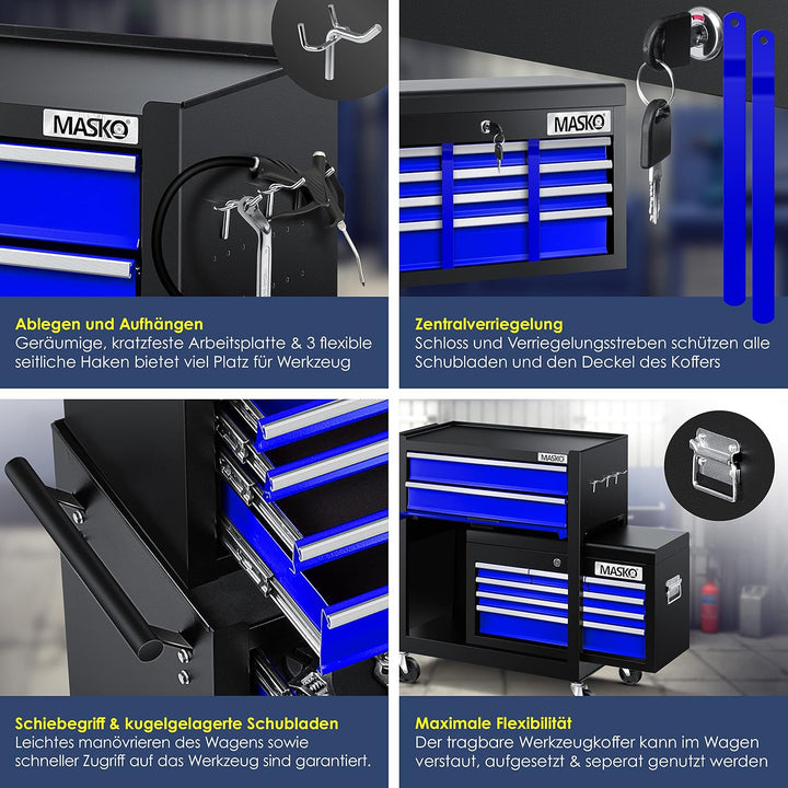 - ๐๐๐๐๐๐ ๐๐๐๐๐๐๐๐๐๐๐๐๐๐: Mit dem MASKO Werkzeugwagen inkl. Koffer entscheiden Sie sich nicht nur fรผr einen optimalen Ordnungshalter, sondern auch fรผr eine ideale und effiziente Sortierung Ihres