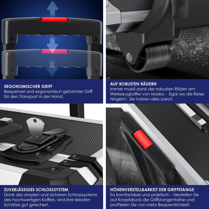 - ๐๐๐๐๐๐๐๐๐-๐๐๐๐๐๐๐: Unser Werkzeugkoffer kommt mit einem Leichtbau-Trolley, der den Transport und die Lagerung Ihrer umfangreichen Ausrรผstung zum Kinderspiel macht. Egal, ob Sie zu Ihrem Arbeitsplatz gehen