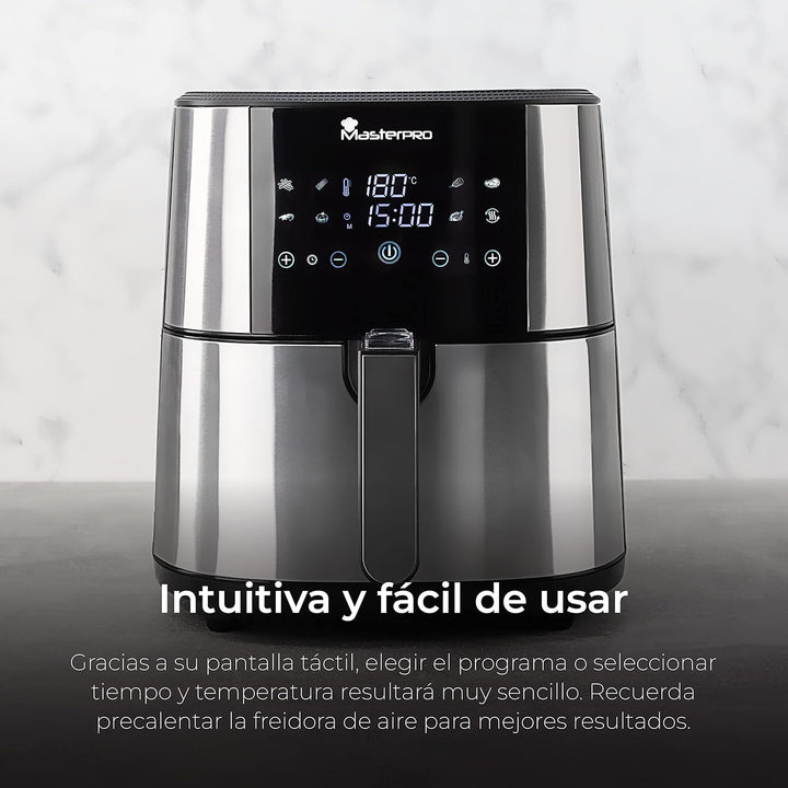 - GESUNDE REZEPTE: Mit unserer Heissluftfritteuse können Sie Speisen mit 90 % weniger Fett zubereiten. Die Leistung von 1800 W garantiert, dass die heisse Luft den gesamten Garraum in einem Winkel von 360° durchströmt und die Speisen knusprig macht.