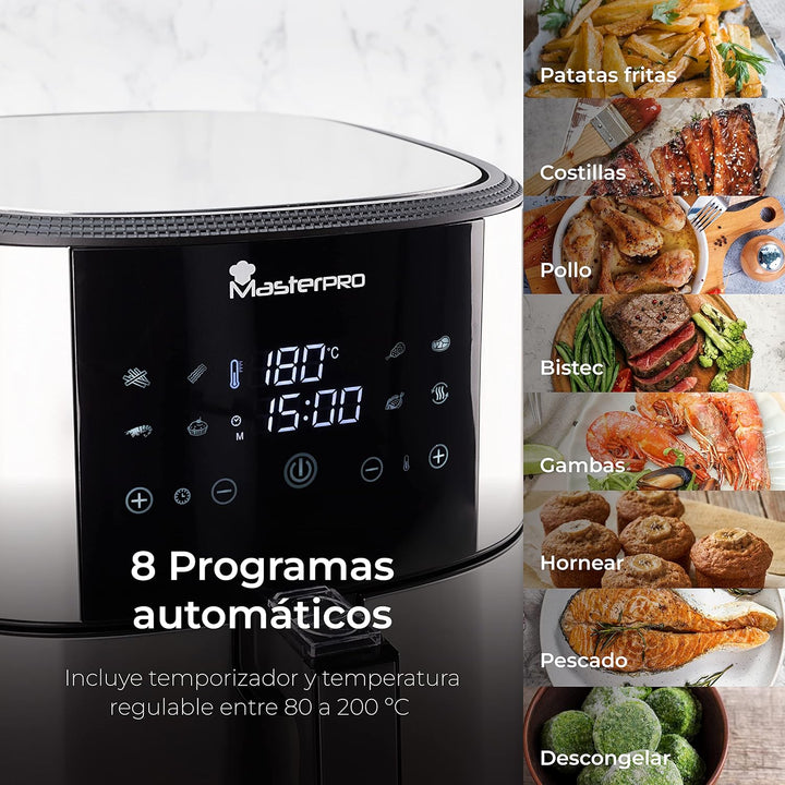 - 8 VERSCHIEDENE FUNKTIONEN: Unsere Foodies Heissluftfritteuseverfügt über 8 verschiedene Programme für Pommes frites, Rippchen, Hähnchen, Steak, Garnelen und Fisch sowie Back- und Auftaufunktionen, die Ihr Die Ihnen das Kochen erleichtern.