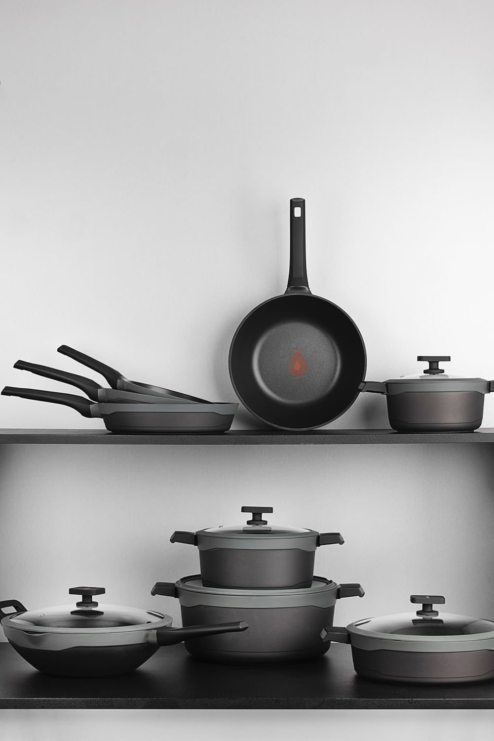 - STAY COOL TECHNOLOGY ANTI-BURNING HANDLE: Diese Serie umfasst Griffe, die mit der Stay Cool Technologie beschichtet sind. So haben Sie einen kühlen Griff, mit dem Sie die Pfanne sicher und ohne sich zu verbrennen anbraten und handhaben können.