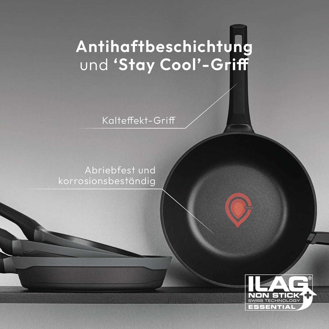 - STAY COOL TECHNOLOGY ANTI-BURNING HANDLE: Diese Serie umfasst Griffe, die mit der Stay Cool Technologie beschichtet sind. So haben Sie einen kühlen Griff, mit dem Sie die Pfanne sicher und ohne sich zu verbrennen anbraten und handhaben können.