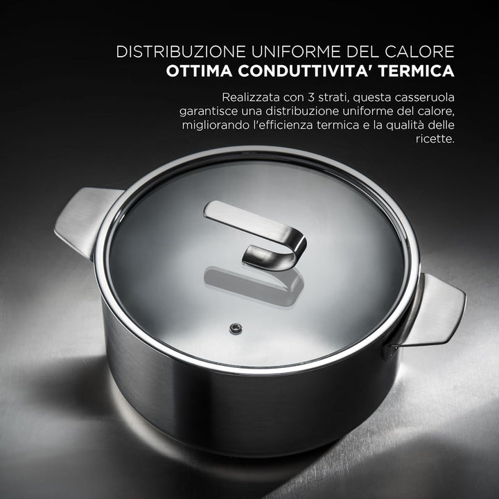 MasterPRO SIGMA - Kochtopf mit Deckel 4.9L 24x11 cm Edelstahl - 3 Schichten für optimale Wärmeleitfä