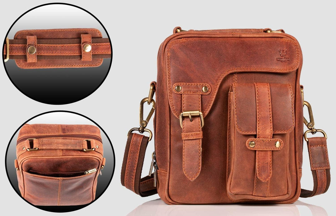 - Jede Ledertasche ist ein handgemachtes Unikat - Länge des verstellbaren Riemens: ca. 100 - 150 cm inkl Schulterpolster