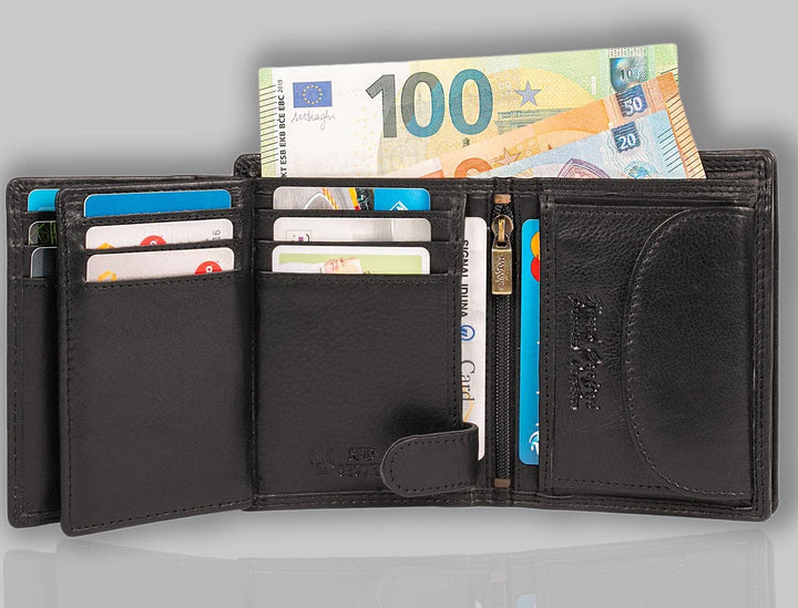 - ✅ GENUG PLATZ: Der Geldbeutel Herren Leder ist ein Platzwunder! Es gibt 13 einzeln genähte Kartenfächer, ein Kleingeldfach mit Reissverschluss und 2 Sichtfenster.