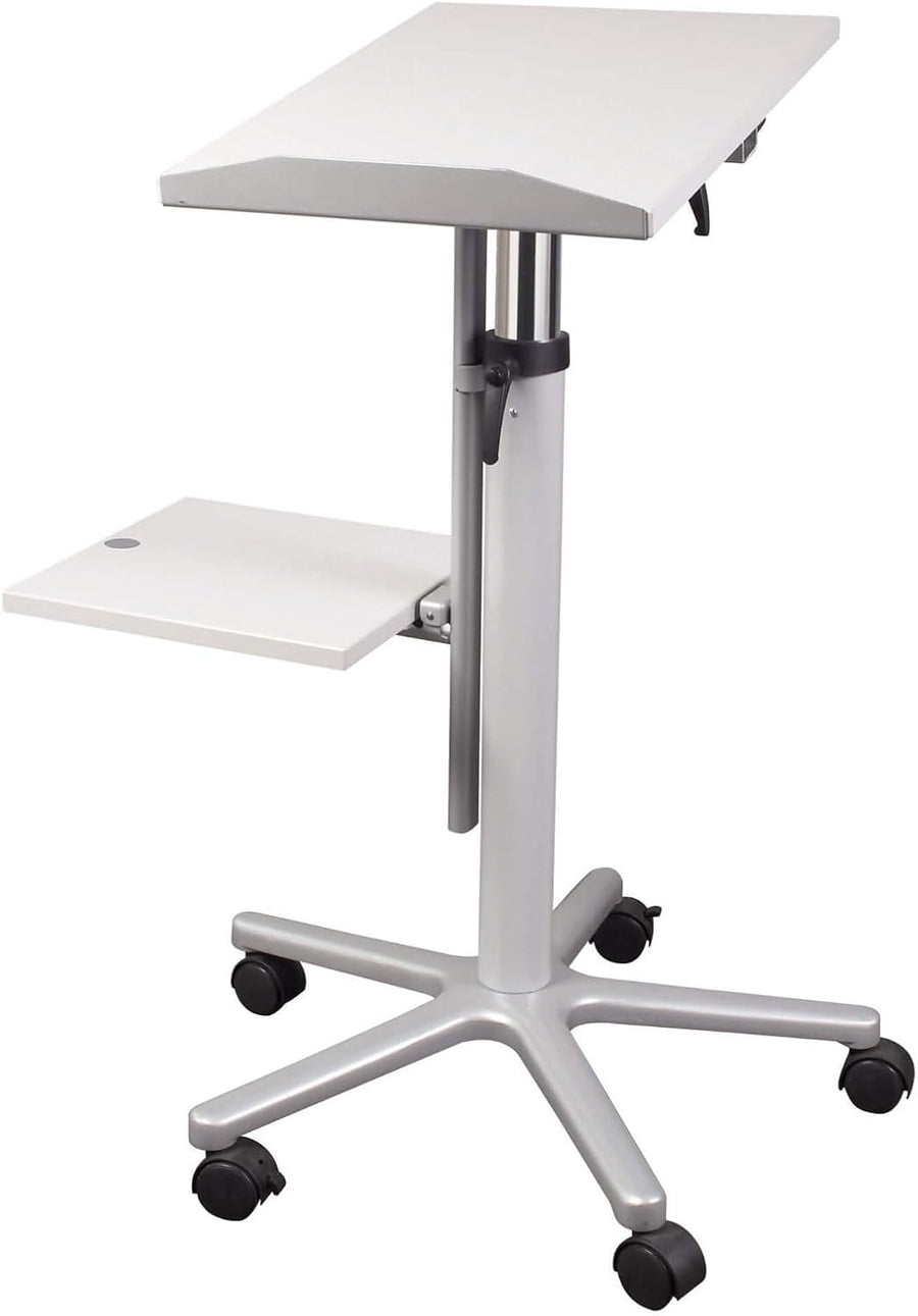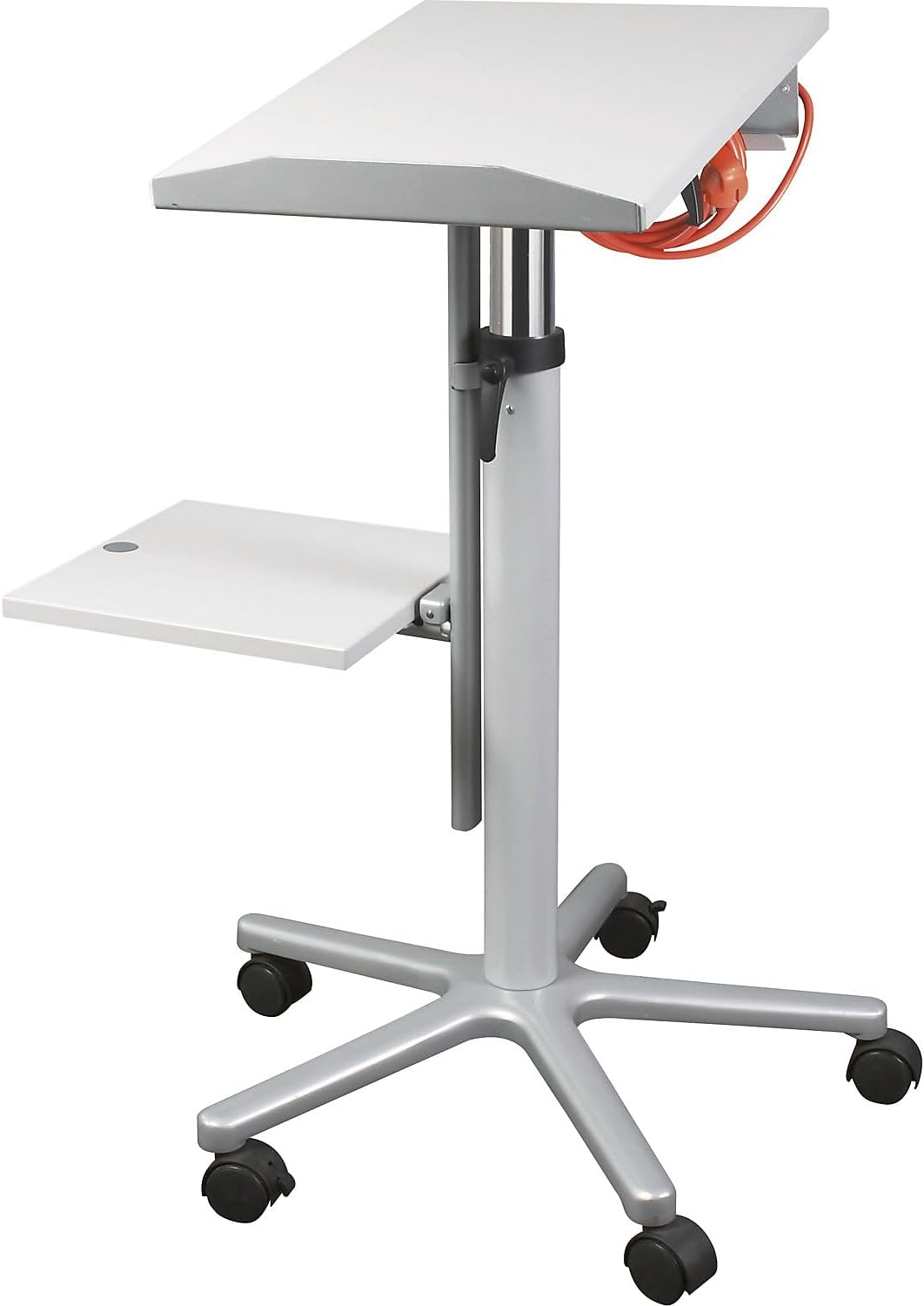- Der Beamer Tisch ist von 73,5 (Sitzhöhe) bis 120 cm stufenlos höhenverstellbarer und passt sich der Grösse des Vortragenden perfekt an. Durch die Airpolster-Technik ist ein sanftes Ablassen des Stehtisch möglich, ein überraschendes Durchsacken der