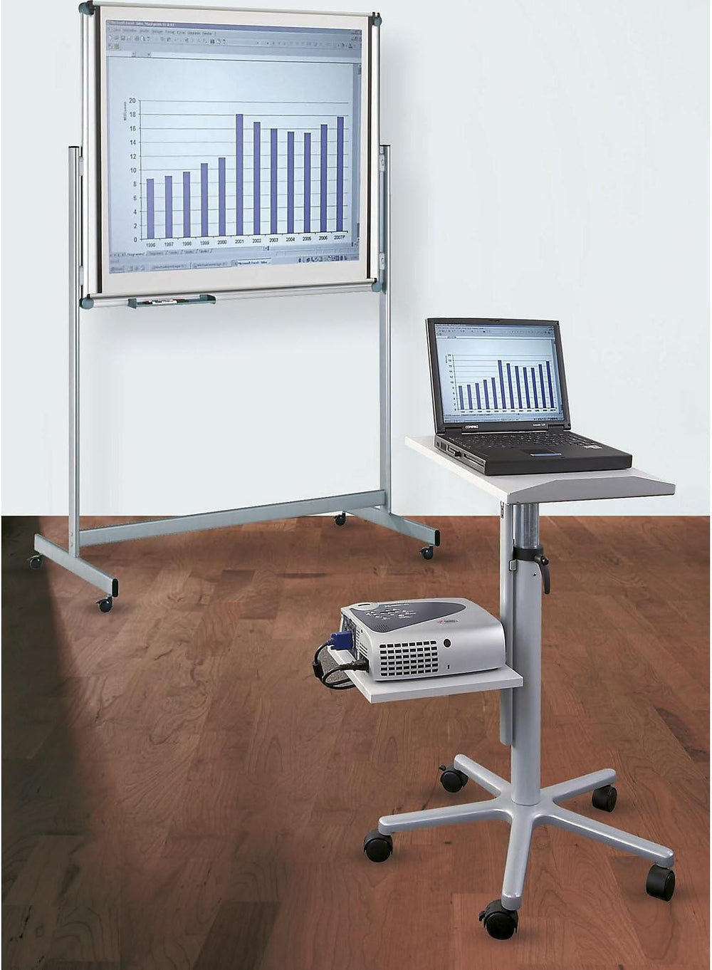 - Die Grösse der Tischplatte 35x50 cm (B x T) ist ideal für Beamer, Projektoren und Laptops. Der Beistelltisch ist um bis zu 10 Grad neigbar, eine Anschlagkante hält die Medien am Platz. Mit bis zu 30 kg Tragkraft sind auch robuste Overhead-, Dia