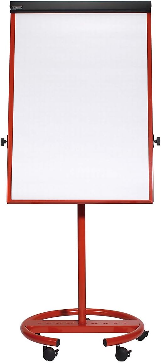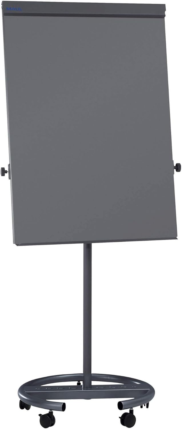 - Ein stabiler Fuss Ø 63 cm mit fünf feststellbaren Laufrollen, sorgt für eine hohe Mobilität des Flipchart Ständers. Die Säule ist aus kräftigem Stahlrohr.