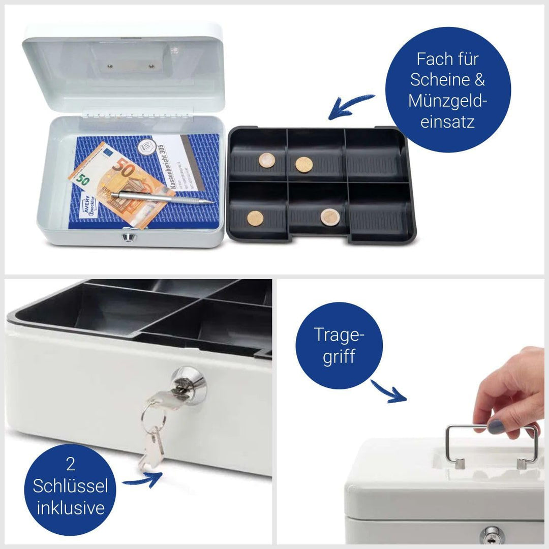 - Grosse Auswahl an Geldkassetten: Verfügbar in 5 verschiedenen Grössen und 4 Farben sind die Kassen vielseitig einsetzbar, z.B. als Flohmarkt Zubehör oder auf dem Weihnachtsmarkt.