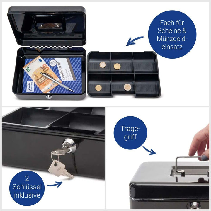 - Mobil: Bewahren Sie Ihr Geld, wichtige Unterlagen oder Andenken sicher auf und haben Sie diese im Notfall geschützt in einer verschliessbaren Box dabei. Verwendbar als Handkasse, kleine Kasse, Money Box oder Sparbox.