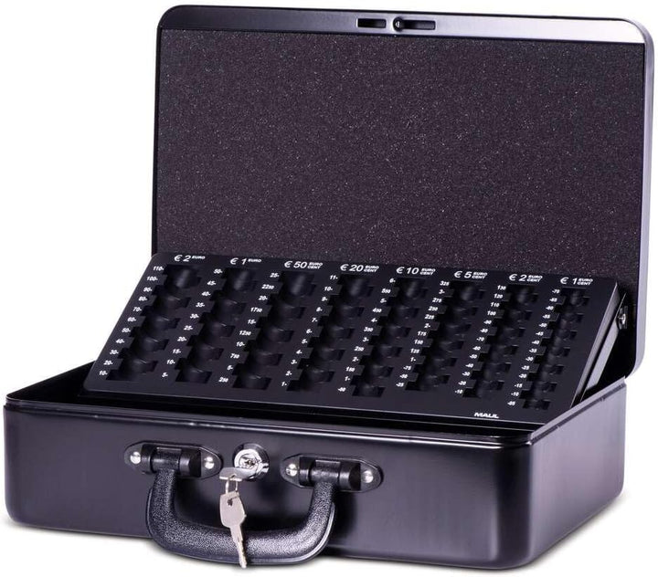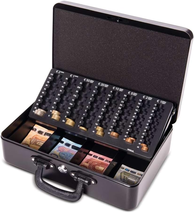 - Die Geldkassette ist aus nahtlos gezogenem, lackiertem Stahl gefertigt und mit einem praktischen Zähleinsatz ausgestattet