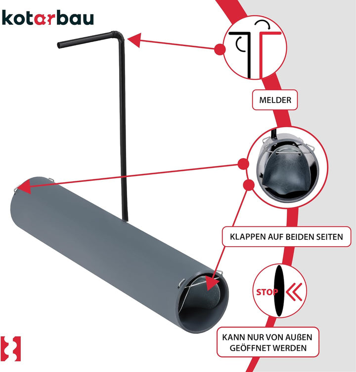 - VERWENDUNG – Die KOTARBAU Wühlmausfalle ist aus PVC Rohr und die Fallentüren sind aus verzinktem Stahl gefertigt. Das Produkt garantiert Zuverlässigkeit und Beständigkeit gegen Feuchtigkeit. Sie können die Falle kontrollieren, ohne sie aus dem