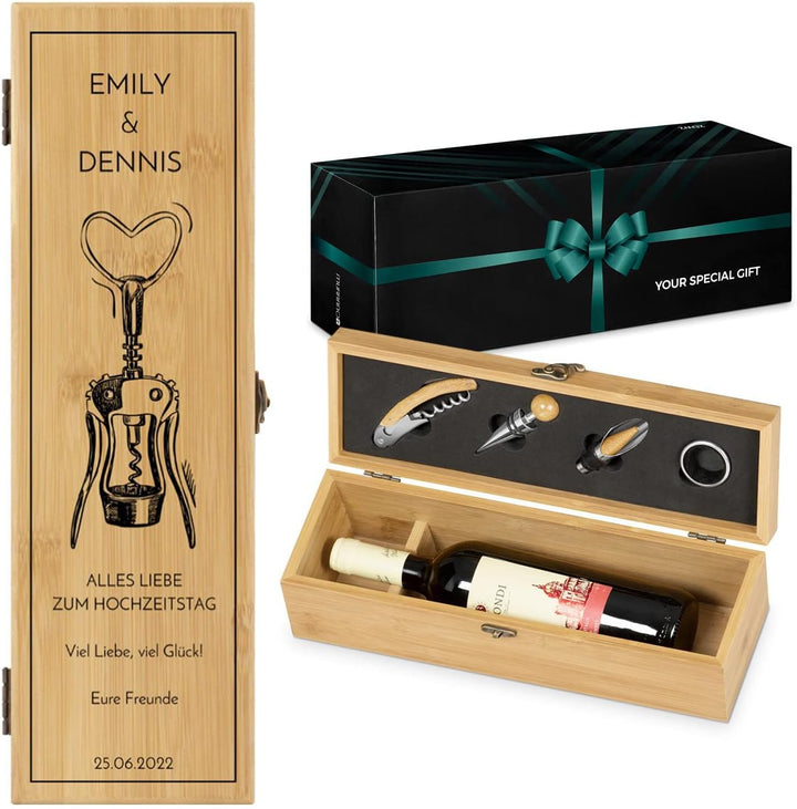 - GESCHENKIDEE FÜR PAARE: das Weinset ist eine grossartige Geschenkidee für die Eltern, Grosseltern, Brautpaar, Liebespaar oder Ehepaar - einfach für die echten Weingeniesser! Die personalisierbare, rustikale Weinkiste eignet sich ideal vor allem als