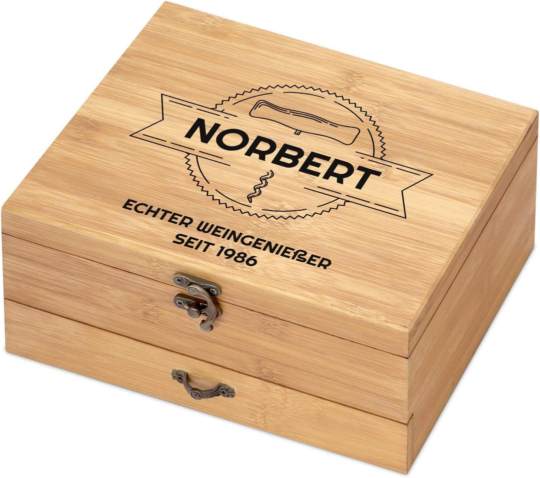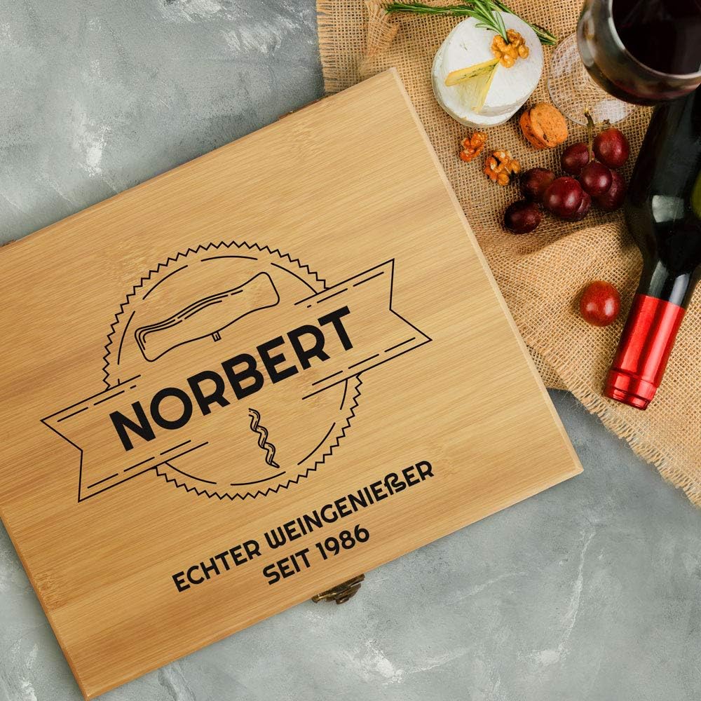- GESCHENKIDEE FÜR HERREN: das Weinset ist eine grossartige Geschenkidee für den Mann, Ehemann, Verlobten, Freund, Vater, Bruder, Grossvater oder Onkel - einfach für einen echten Weingeniesser! Das personalisierbare, rustikale Weinöffner-Set eignet