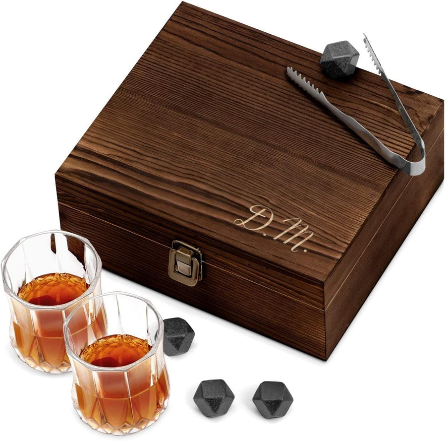 - 🎁 STILVOLLES GESCHENKSET: 8 wiederverwendbare Whiskysteine aus geschmacksneutralem, poliertem Granit mit einer Zange aus Edelstahl, einem schwarzen Velourbeutel + 2 Whiskygläser in einer gravierbaren, schliessbaren, hochwertigen Holzbox. Dank der