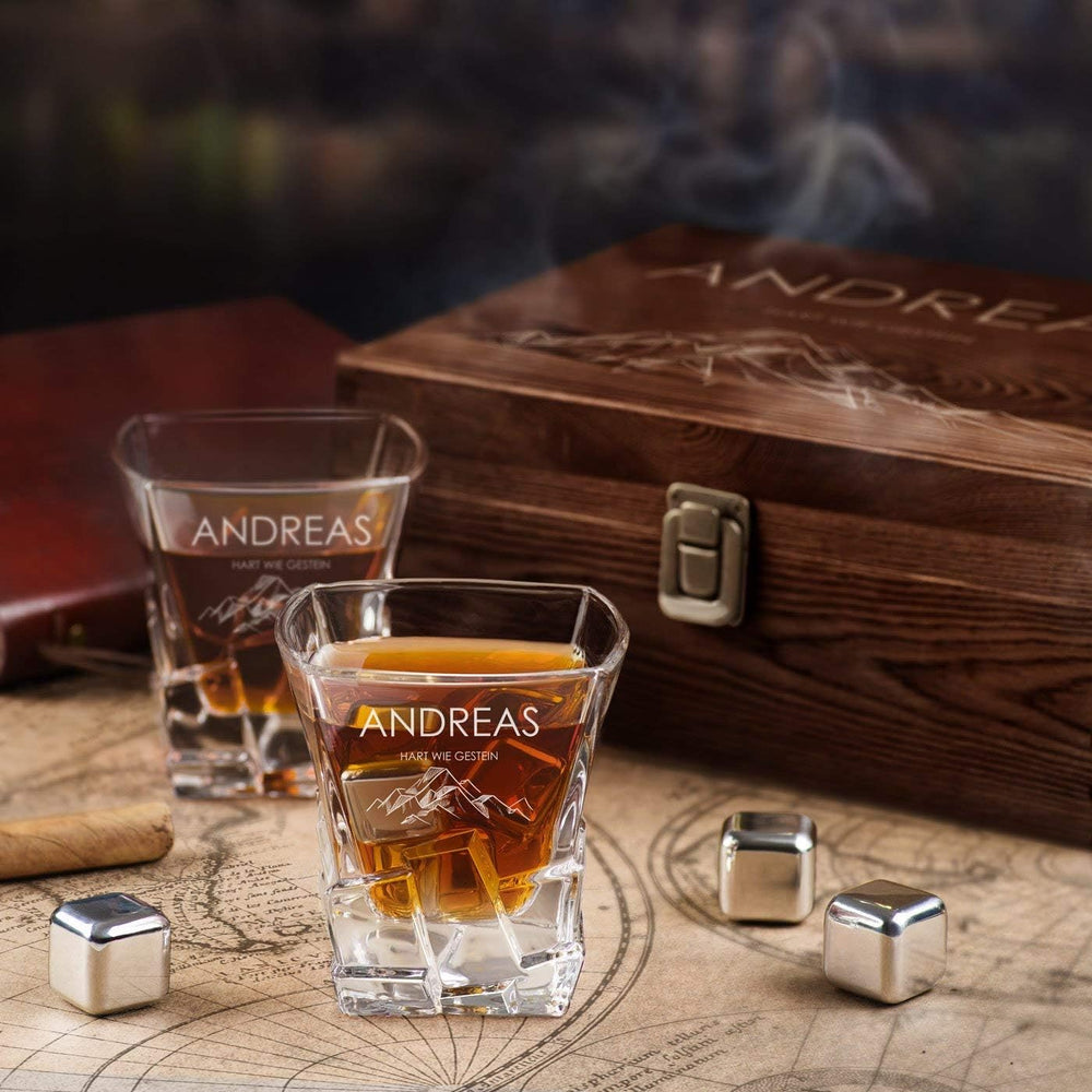 - 🔬 PROFESSIONELLE LASERGRAVUR: um dem Geschenkset einen individuellen Charakter zu verleihen, können Sie sowohl die Holzbox als auch die Whiskygläser mit Ihrem Wunschtext gravieren lassen. Für Ihren Individualisierungswunsch nutzen Sie bitte die