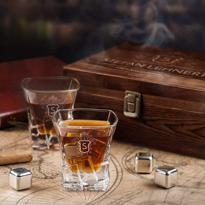 - 🔬 PROFESSIONELLE LASERGRAVUR: um dem Geschenkset einen individuellen Charakter zu verleihen, können Sie sowohl die Holzbox als auch die Whiskygläser mit Ihrem Wunschtext gravieren lassen. Für Ihren Individualisierungswunsch nutzen Sie bitte die