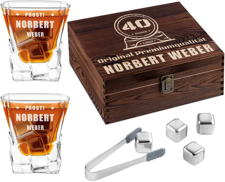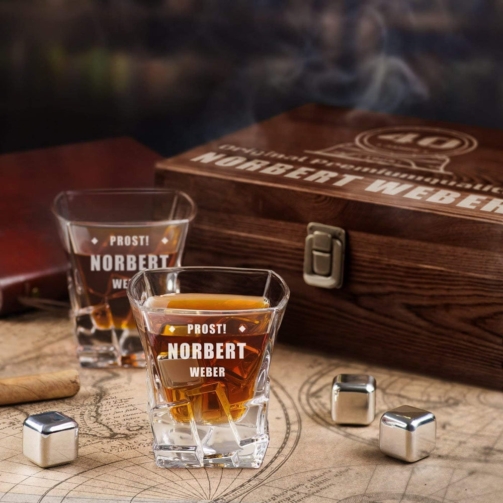- PROFESSIONELLE LASERGRAVUR: um dem Geschenkset einen individuellen Charakter zu verleihen, können Sie sowohl die Holzbox als auch die Whiskygläser mit Ihrem Wunschtext gravieren lassen. Für Ihren Individualisierungswunsch nutzen Sie bitte die Option