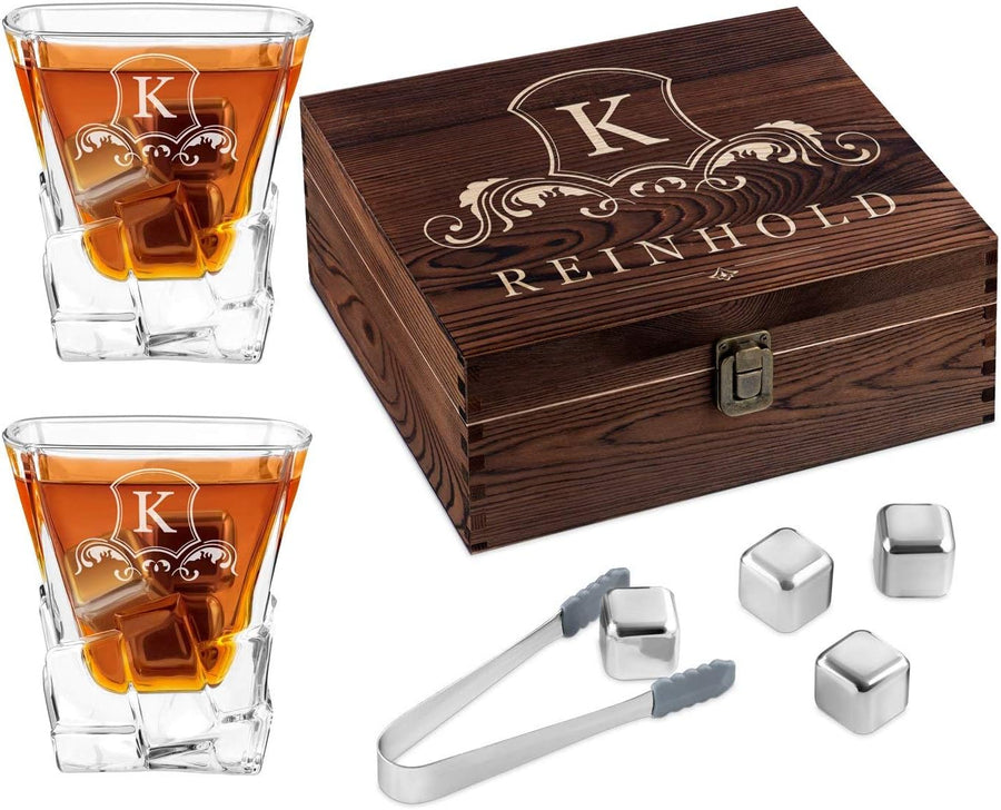 - Profesionelle Lasergravur: um dem Whiskey Geschenkset einen individuellen Charakter zu verleihen, können Sie sowohl die Holzbox als auch die Whiskygläser mit Ihrem Wunschtext gravieren lassen. Für Ihren Individualisierungswunsch nutzen Sie bitte die