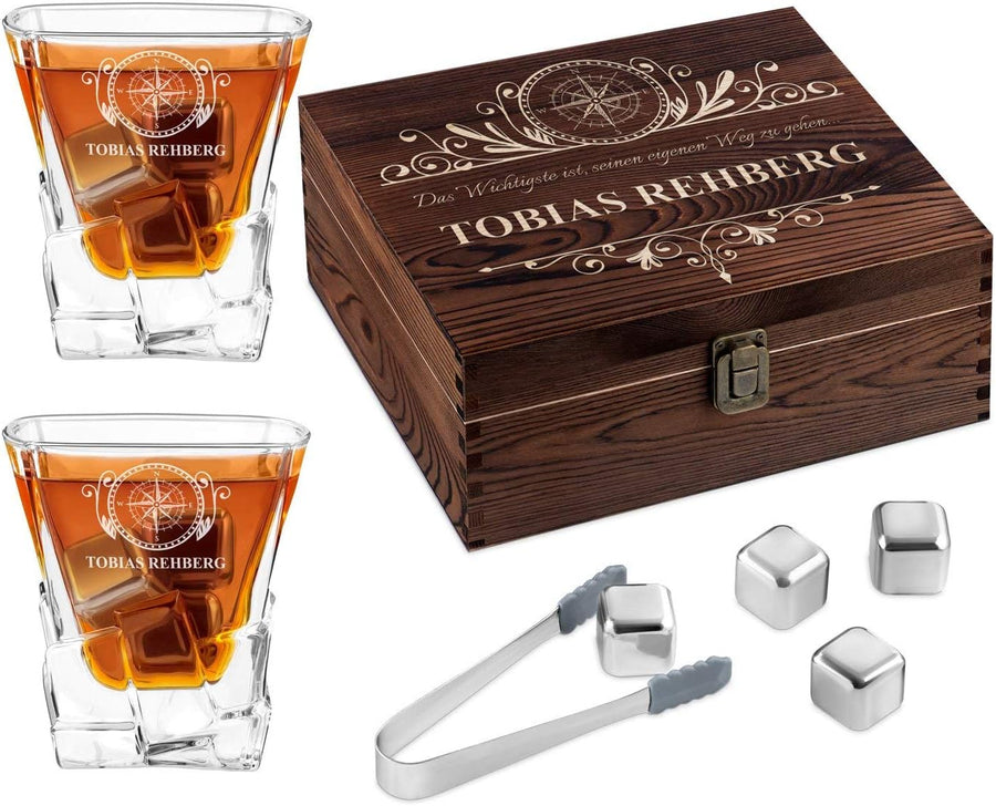 - PROFESSIONELLE LASERGRAVUR: um dem Geschenkset einen individuellen Charakter zu verleihen, können Sie sowohl die Holzbox als auch die Whiskygläser mit Ihrem Wunschtext gravieren lassen. Für Ihren Individualisierungswunsch nutzen Sie bitte die Option