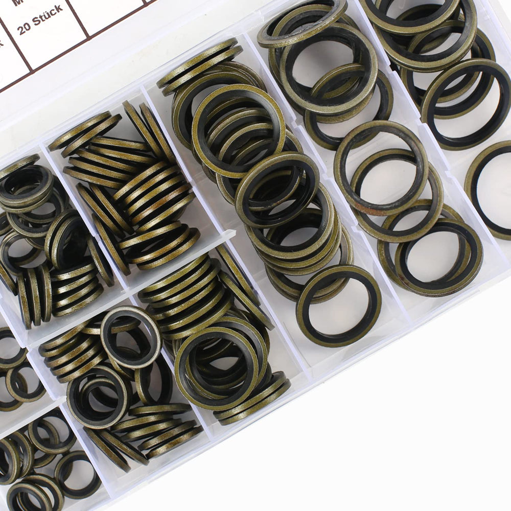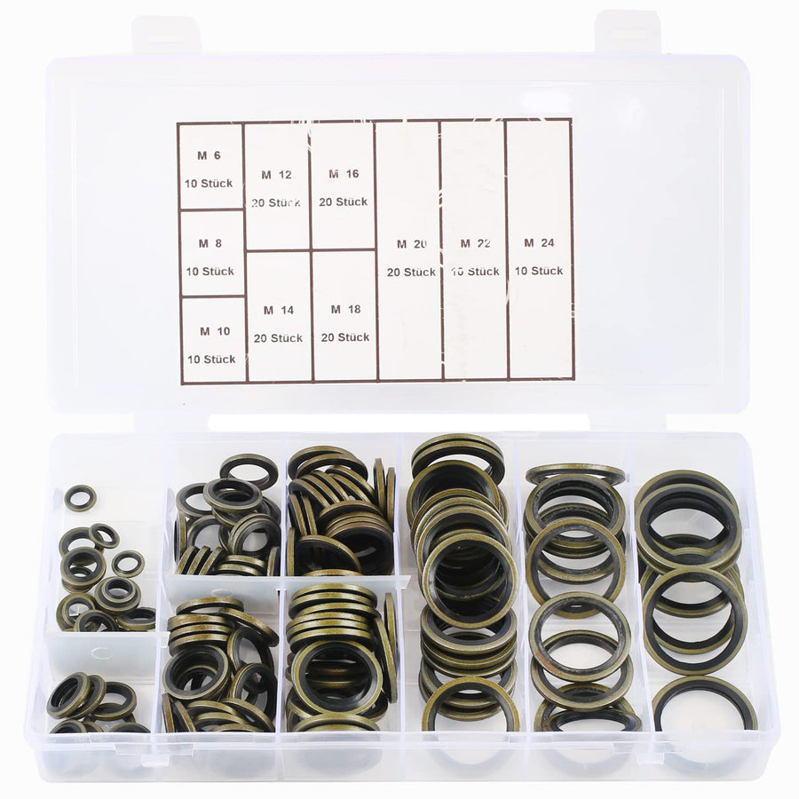 - Dichtscheiben-Set in 10 verschiedene Abmessungen (M6 bis M24) zur Abdichtung von Verschraubungen und Flanschverbindungen.