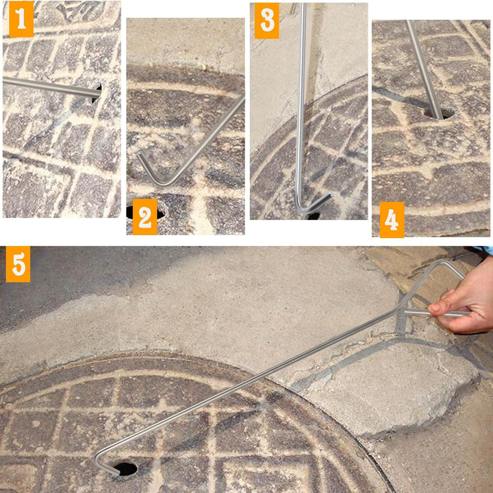 - 【Breite Anwendungen】: Stabiler Schachtdeckelhaken zum einfachen Anheben von Schachtdeckeln, Gullys & Kanaldeckeln.