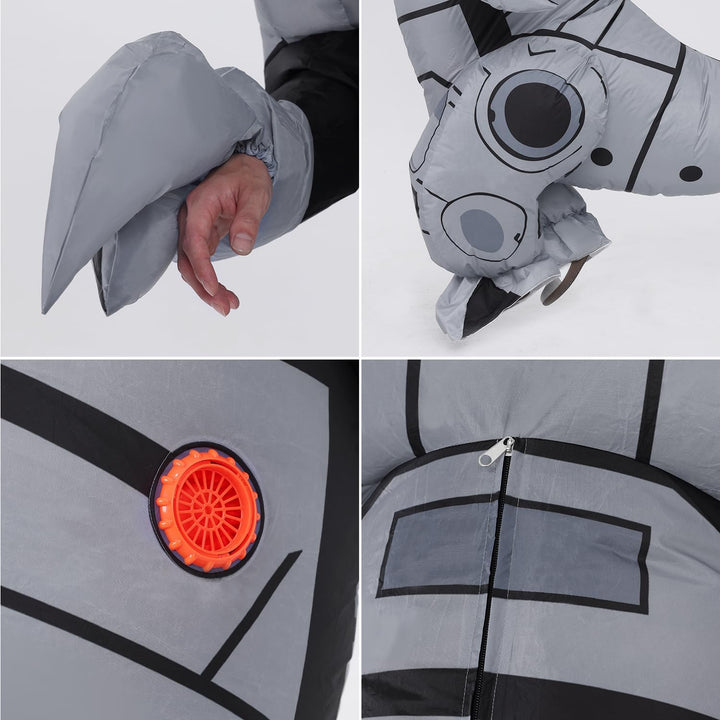 - Einfach zu bedienen: Tragen Sie das Dinosaurier Kostüm → Reissverschluss nach oben → Schalten Sie den Schalter ein → Warten aufblasen. Dino Kostüm Aufblasbar lässt sich einfach aufblasen. Schalte einfach den Ventilator, vier AA-Batterien (ohne