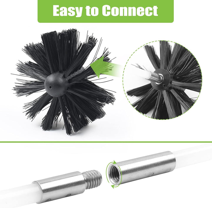 • ✅【Vorteilspackung】Das Set enthält 18 flexible Nylonstäbe mit einer Länge von 41 cm / 16 Zoll, 2 Schornsteinbürstenköpfe mit einem Durchmesser von 10 cm / 4 Zoll, 1 lange Bürste mit Holzgriff, 1 Sechskantstück, 1 Klebeband und 1