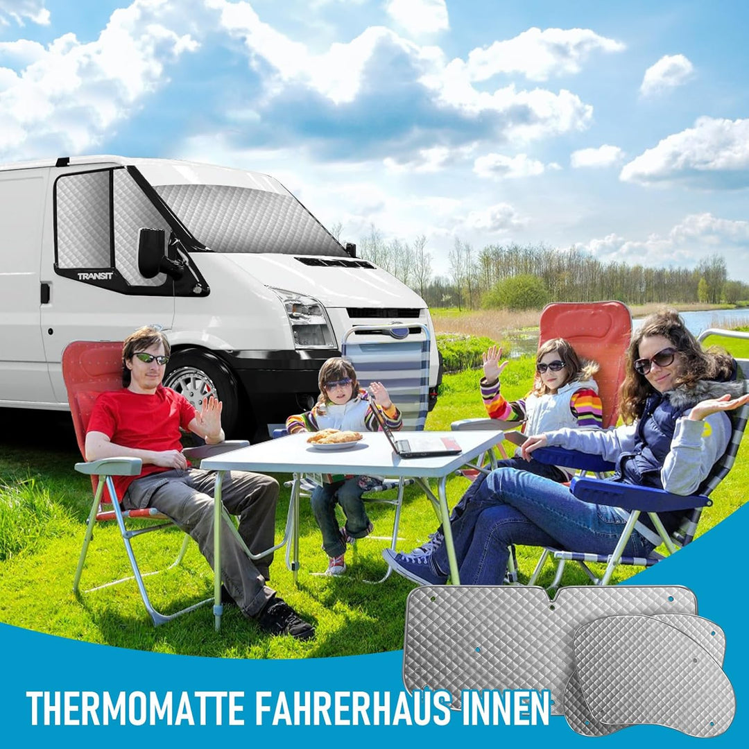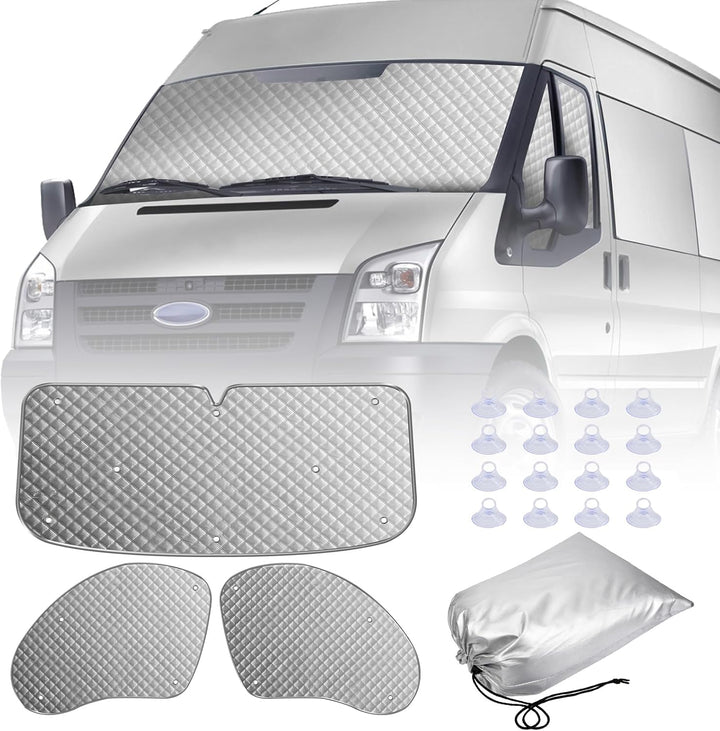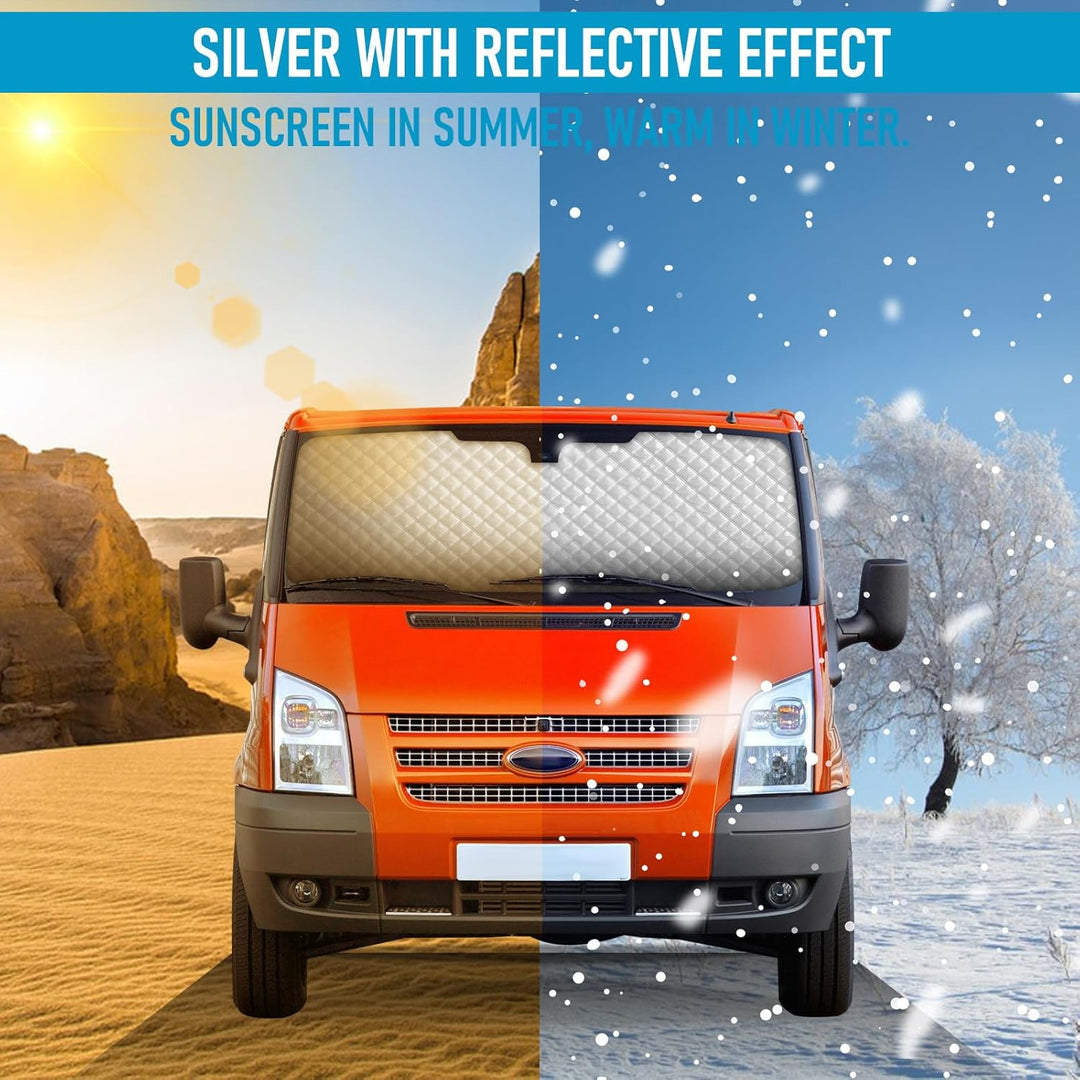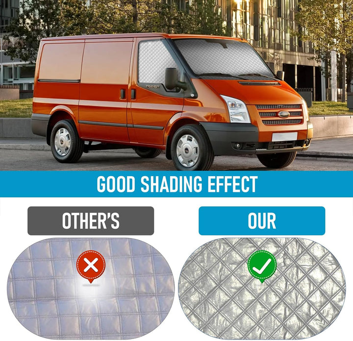 - 🛒【3-teiliges Set Thermomatten】Das 3-teilige Thermomatten-Set von MaxEarn ist speziell für FORD Transit Van MK7. Die Schutzmatten werden dreiteilig geliefert (1 Frontfenster Sonnenschutz und 2 Seitenfenster Sonnenschutz). Die Befestigung über
