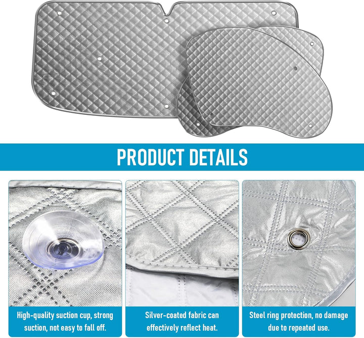 - 🛒【Silberner Reflektierender Effekt】Im Sommer zeigt die silberne Seite nach aussen, reflektiert das Sonne und UV, um das Fahrzeug im Sommer kühler zu halten. Im Winter kann die Windschutzscheiben-Sonneblende umgedreht werden, das Speichert die