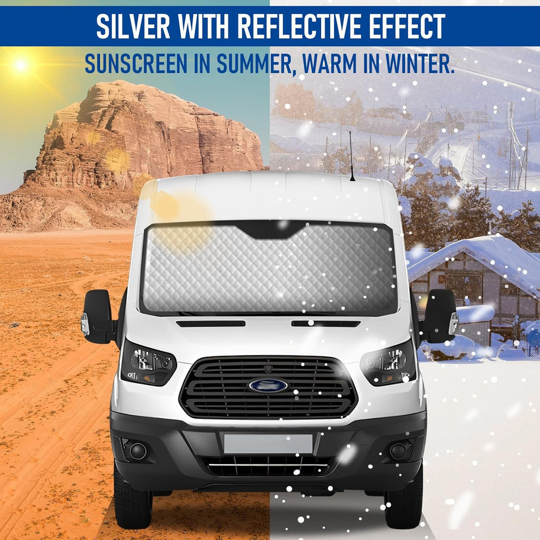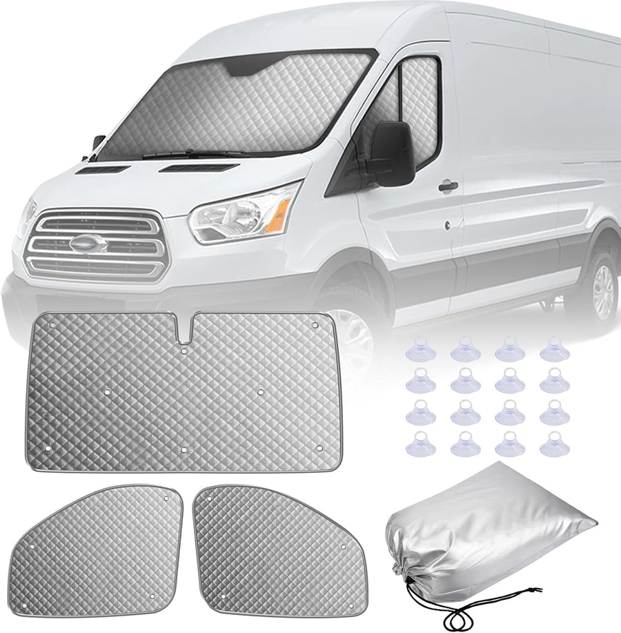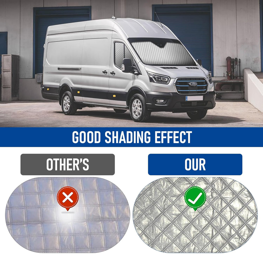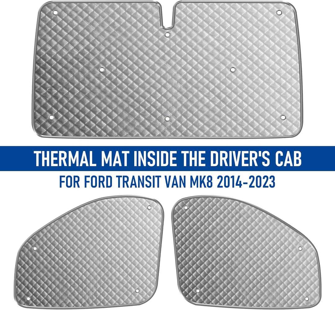 - 🛒【3-teiliges Set Thermomatten】Das 3-teilige Thermomatten-Set von MaxEarn ist speziell für FORD Transit Van MK8. Die Schutzmatten werden dreiteilig geliefert (1 Frontfenster Sonnenschutz und 2 Seitenfenster Sonnenschutz). Die Befestigung über