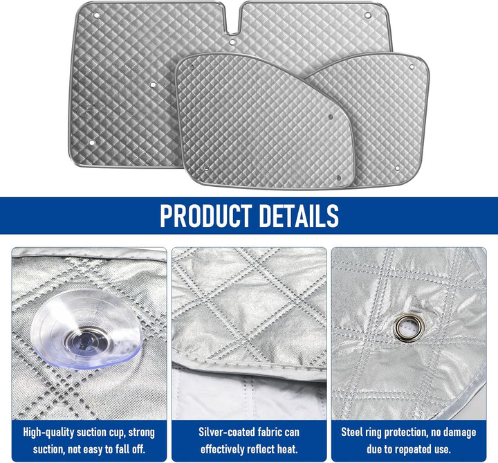 - 🛒【Silberner Reflektierender Effekt】Im Sommer zeigt die silberne Seite nach aussen, reflektiert das Sonne und UV, um das Fahrzeug im Sommer kühler zu halten. Im Winter kann die Windschutzscheiben-Sonneblende umgedreht werden, das Speichert die
