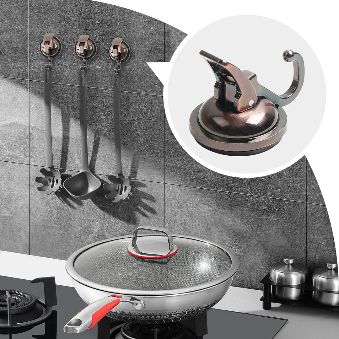 - ✅【Packungsinhalt】Sie erhalten 6 grosse Kupferfarben Saugnapfhaken. Der Hakendurchmesser beträgt 60 mm (2,36 Zoll) und die Gesamtlänge beträgt 85 mm (3,32 Zoll). Es ist perfekt für glatte Küchen- und Badezimmerwände oder Glas.