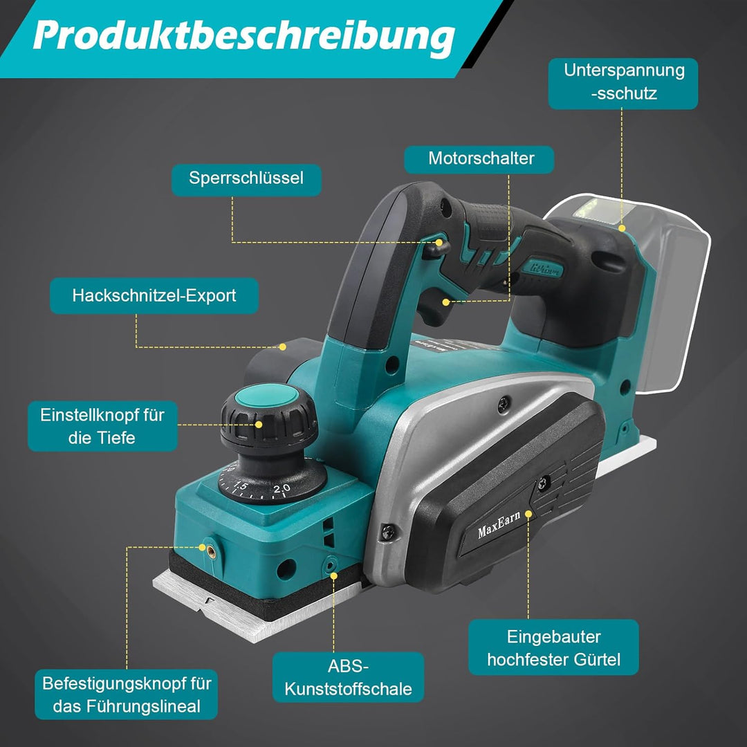 - ✅【Sicherheitsschutz】Der Sicherheitsverriegelungshebel verhindert eine versehentliche Aktivierung. Der Hobel startet nur, wenn der Schalter und der Sicherheitsschalter gleichzeitig gedrückt werden.
