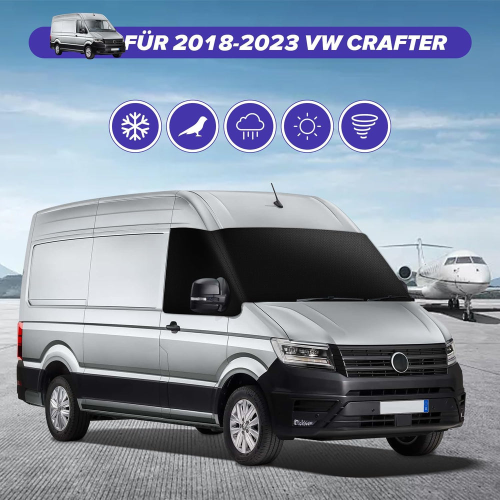 - 🛒【Kompatibilität】Die Frontschutzplane Windschutzscheibenabdeckung Ersatz für VW Crafter 2018-2023. Die Autoabdeckung kann auf beiden Seiten an den Türen befestigt werden, was perfekt zum Automodell passt und nicht leicht im Wind abfällt.