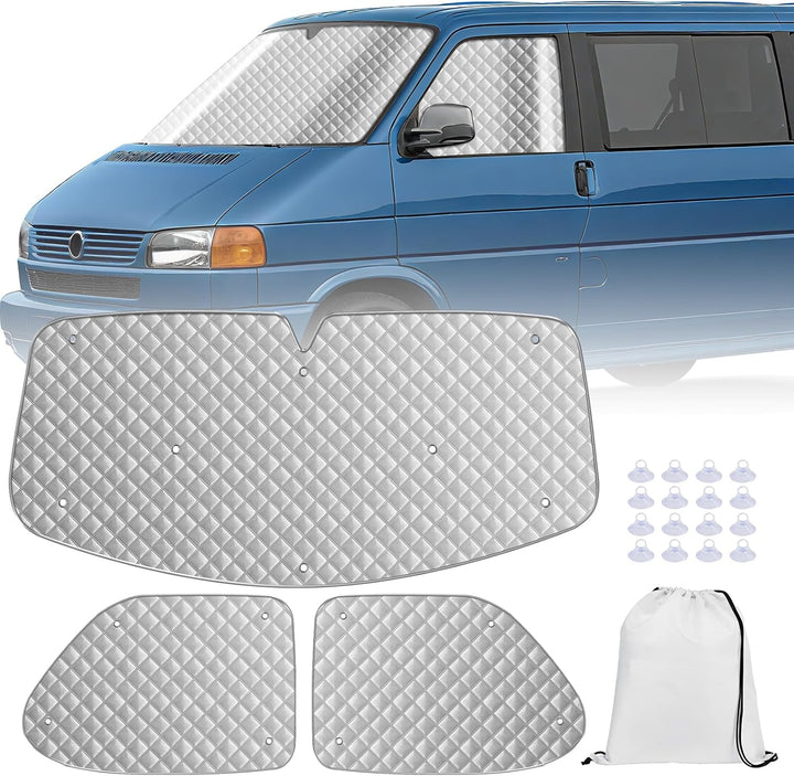 - đă3-teiliges Set ThermomattenăDas 3-teilige Thermomatten-Set von MaxEarn ist speziell fĂŒr VW T4. Die Schutzmatten werden dreiteilig geliefert (1 Frontfenster Sonnenschutz und 2 Seitenfenster Sonnenschutz). Die Befestigung ĂŒber SaugnĂ€pfe
