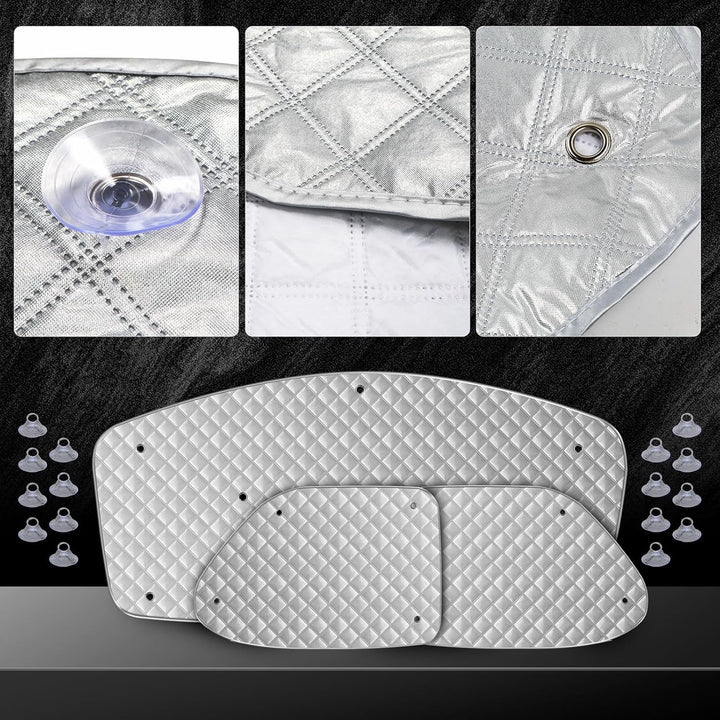 - đăSilberner Reflektierender EffektăIm Sommer zeigt die silberne Seite nach aussen, reflektiert das Sonne und UV, um das Fahrzeug im Sommer kĂŒhler zu halten. Im Winter kann die Windschutzscheiben-Sonneblende umgedreht werden, das Speichert die
