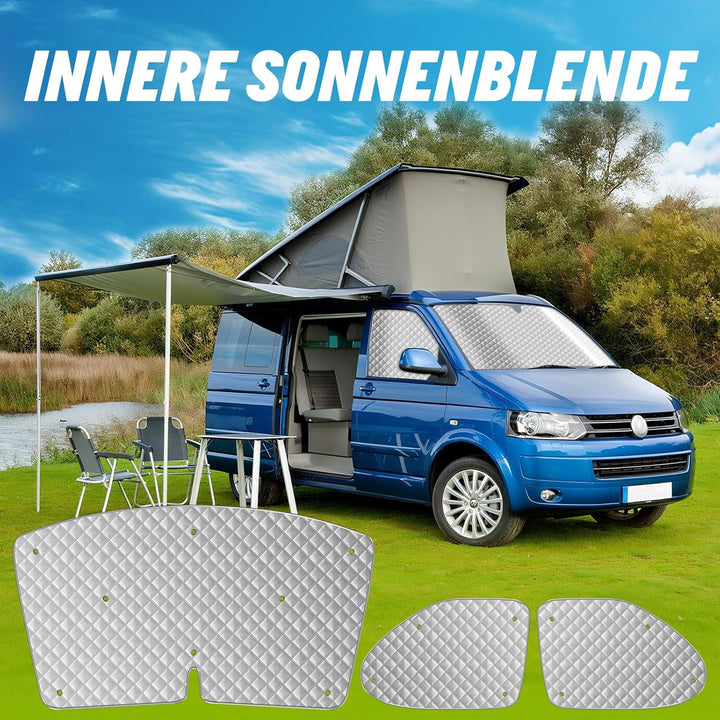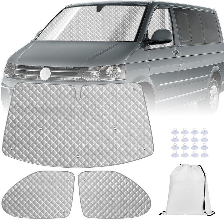 - 🛒【3-teiliges Set Thermomatten】Das 3-teilige Thermomatten-Set von MaxEarn ist speziell für VW T5 & T6 ab Baujahr 2003. Die Schutzmatten werden dreiteilig geliefert (1 Frontfenster Sonnenschutz und 2 Seitenfenster Sonnenschutz). Die Befestigung