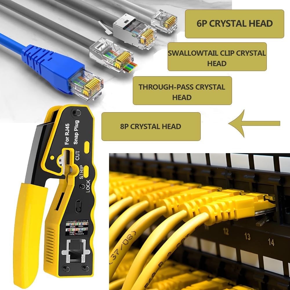 - ▲Hohe Qualität: Hochleistungs-RJ45-Crimpwerkzeug Mit Präzisionsstanzen, Abisolieren und Anschliessen von RJ11 / 12- und RJ45-Verlängerungskupferdrähten, um während des Crimpzyklus eine 360-Grad-Steckverbinderunterstützung zu bieten.