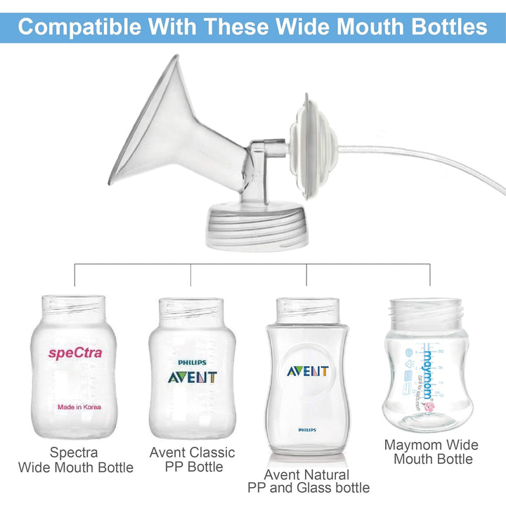 - NUR BEI FLASCHEN MIT BREITEM MUND ZU VERWENDEN. Verwenden Sie dieses Kit mit Spectra-Flaschen, Kompatibel mit Avent-Flaschen und Maymom-Weitmundflaschen. Funktioniert NICHT mit ANDEREN WEITHALS-FLASCHEN. GESCHLOSSENES SYSTEM. Kein Kontakt zwischen Milch