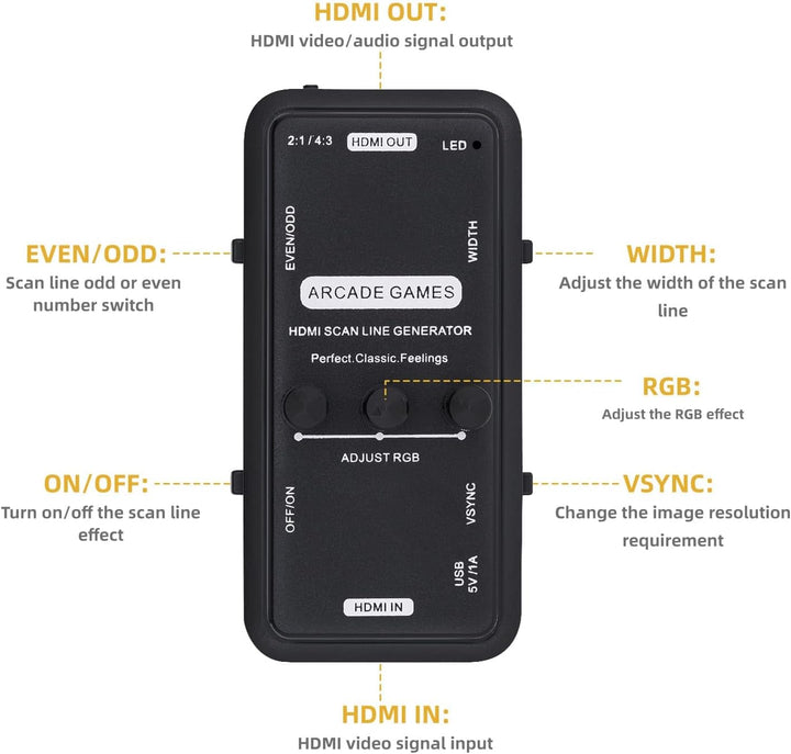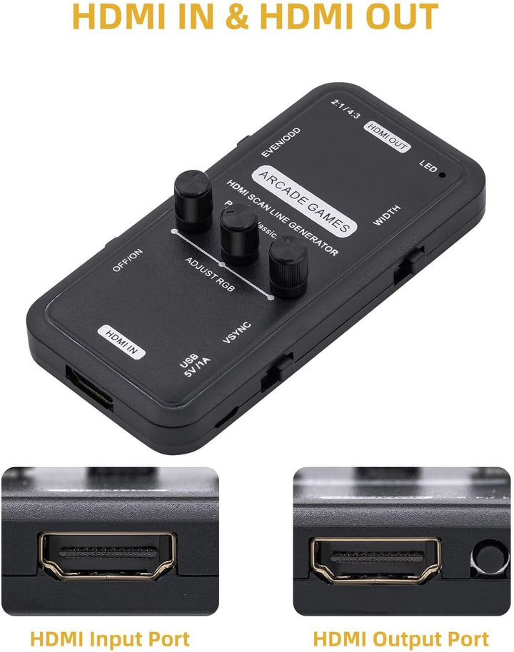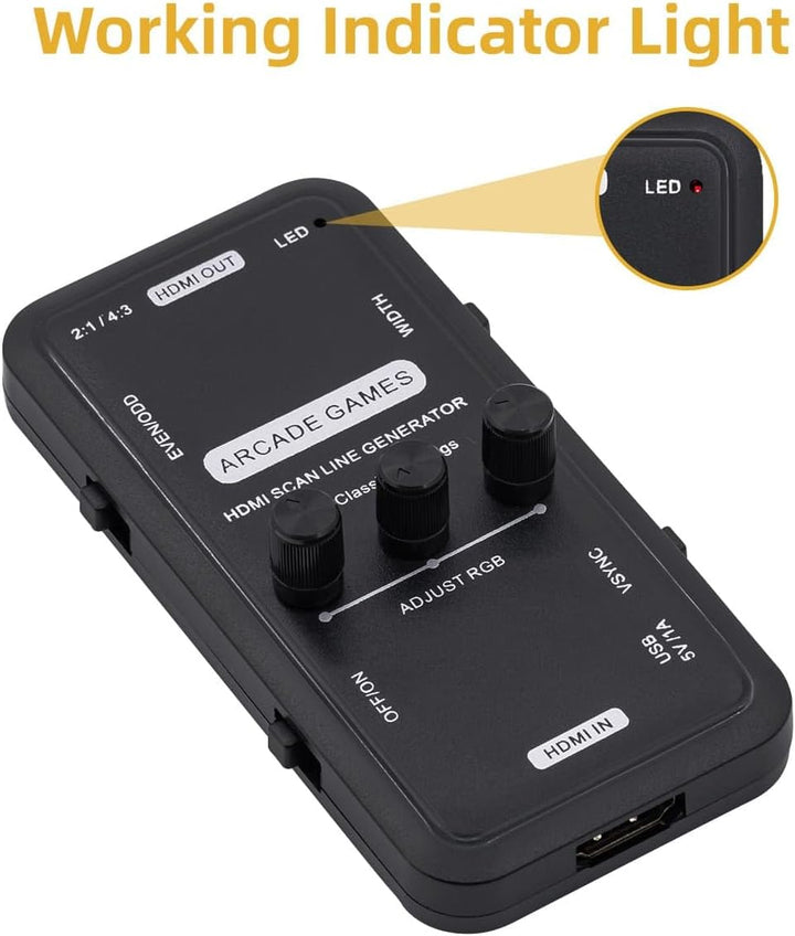 - The scan lines added to the game screen are done by hardware. Any game that needs to add a scan line can be done by linking the device The scanner is a self-powered device and does not require an external power supply.