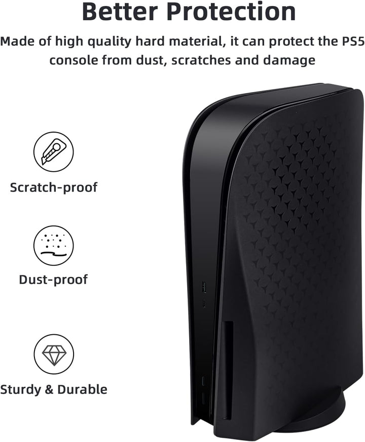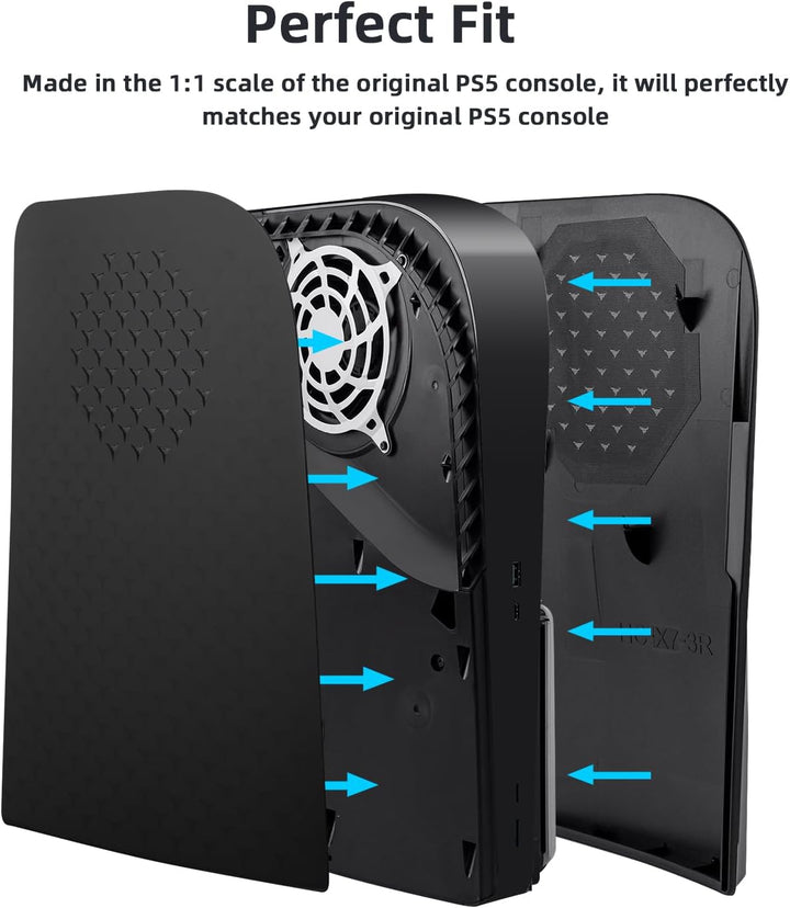 - Einzigartiges Design: Die playstation 5 Abdeckung wurde entwickelt, um Ihnen ein reibungsloseres Spielerlebnis zu bieten. Die speziell angepasste playstation 5 Platten haben Löcher auf beiden Seiten zur optimalen Kühlung, die die Luftzirkulation besser
