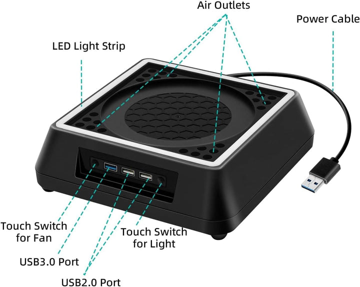 - Einstellbares Kühlsystem: Im Vergleich zu anderen Xbox Series X-Lüftern ist unser Xbox Series X-Ständer mit einem Hochgeschwindigkeitslüfter ausgestattet, der eine effektivere Verteilung des Luftstroms mit 3 Geschwindigkeitsstufen mit 3 Anzeigen