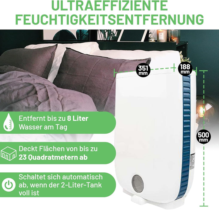 - EINFACHE NUTZUNG – Unsere Entfeuchter für Zuhause haben einfache Bedienelemente und einen einstellbaren Feuchtigkeitsregler mit den Optionen 40/50/60 % und einen Wäsche-Modus und sind anwenderfreundlich entworfen.