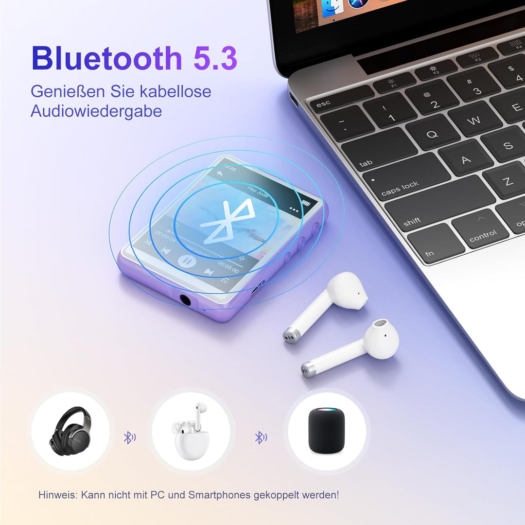 • ♬ 【Verschiedene Musikformate】Machen Sie sich keine Gedanken über die Konvertierung von Dateien oder begrenzte Optionen - dieser MP3-Player unterstützt eine Vielzahl von Formaten, darunter MP3, WAC, WAV, AAC, FLAC usw., damit Sie Ihre Musik ohne