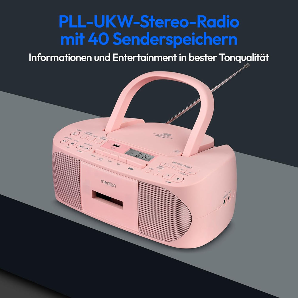 - Musik für überall mit dem CD-/MP3-/Kassetten PLL-UKW Radio mit 40 Senderspeicherplätzen